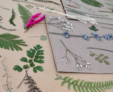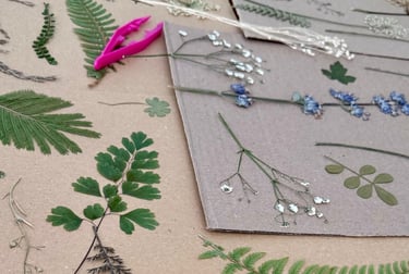 Je pré-enduis les papiers pour vous, en amont. Le jour de l’atelier, vous n'avez plus qu'à composer, exposer à la lumière et développer vos cyanotypes grâce aux végétaux et aux pièces de mon herbier mises à disposition.