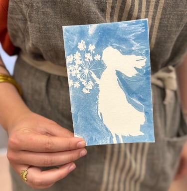Je serai ravie de préparer avec vous un atelier cyanotype où la nature, la lumière et vos histoires se rencontrent.